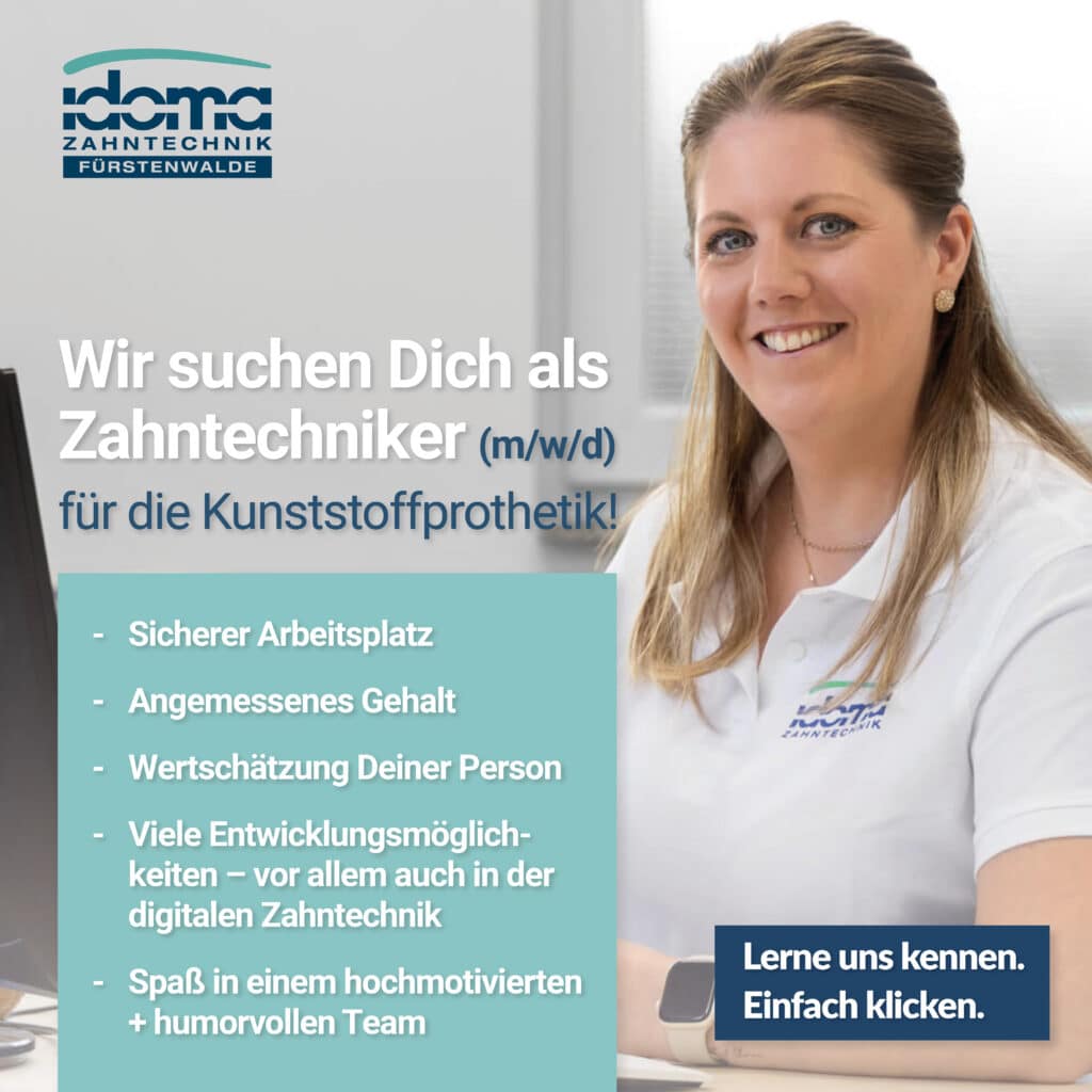 „Von Rostock über Berlin und Fürstenwalde bis Frankfurt (Oder) – ist IDOMA Ihr zuverlässiger Partner für hochwertige Zahntechnik auf dem neuesten Stand der Digitalisierung. Ob klassische oder digital basierte Versorgungen bzw. Praxiskonzepte mit Intraoralscan – wir begleiten Sie kompetent, persönlich und zukunftssicher mit einem hohen Servicegedanken.“