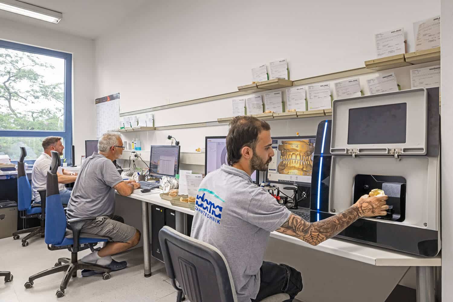Entweder bei uns im Labor oder bei Ihnen in der Zahnarztpraxis.